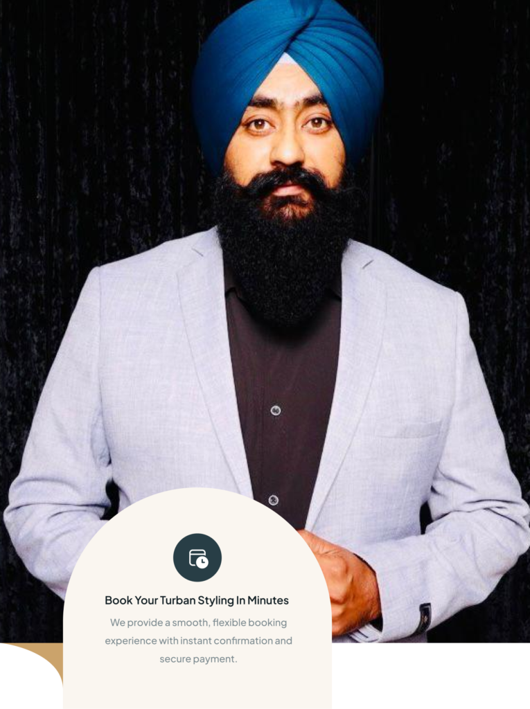 Secure your date with a professional Sikh turban stylist. Whether it’s for a wedding, event, or photoshoot, we bring authentic styling directly to your location.
